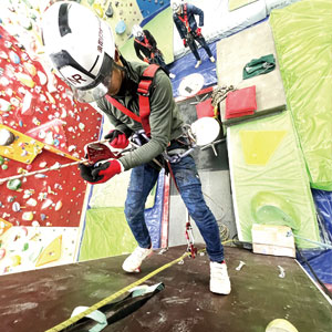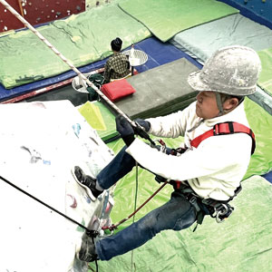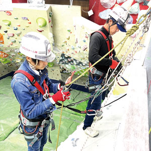 座学後の実技はスラブ壁を懸垂下降からスタート!