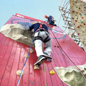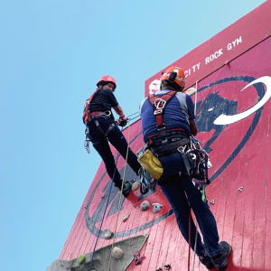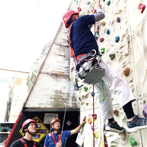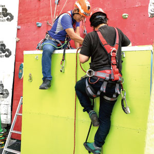 座学が終わって1便目の懸垂下降!のためにまずはクライミングで登っていただきます(^_^)