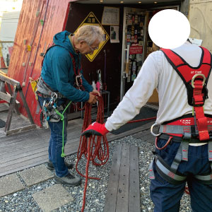 懸垂下降のためにロープをセットします!